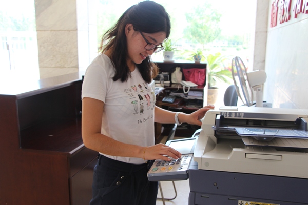 小俞是個(gè)熱心腸的人,同事工作忙,她就幫助他們打印需要的資料,還會(huì)教同事如何使用打印機(jī)和傳真機(jī)。小俞樂觀開朗的性格也感染到身邊的每一位同事,然他們?cè)谟淇斓臍夥罩袝簳r(shí)忘掉夏天的炎熱。