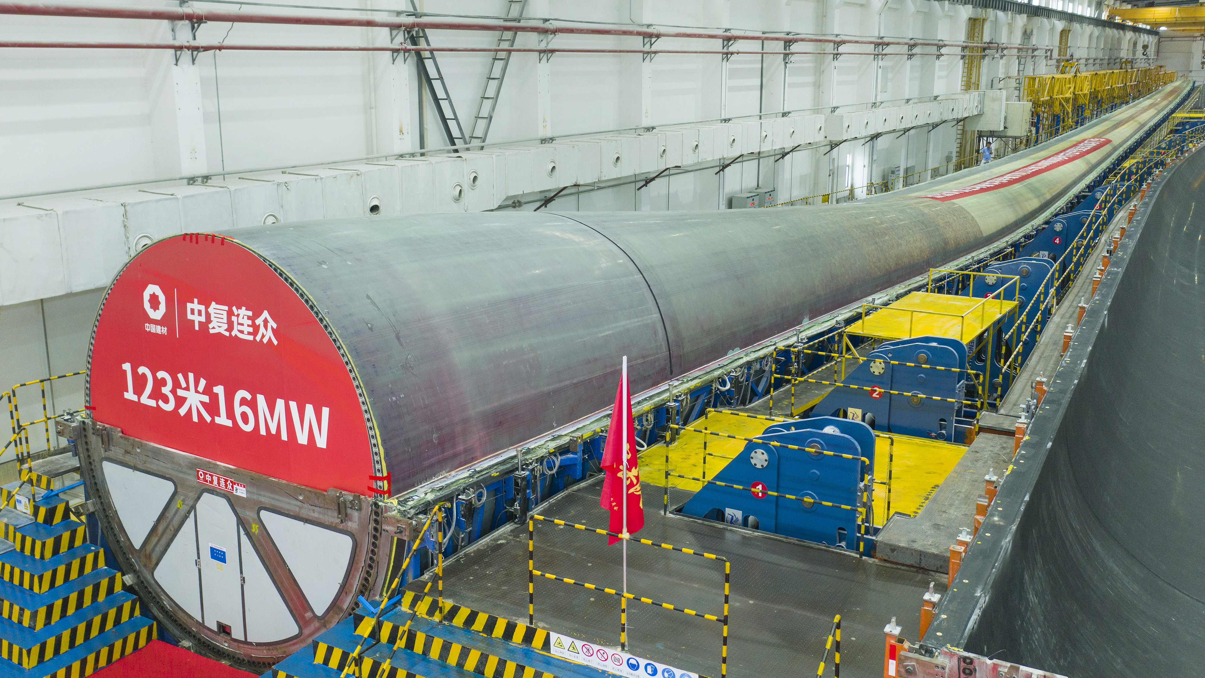 全球最長(zhǎng)123米風(fēng)電葉片在中復(fù)連眾下線