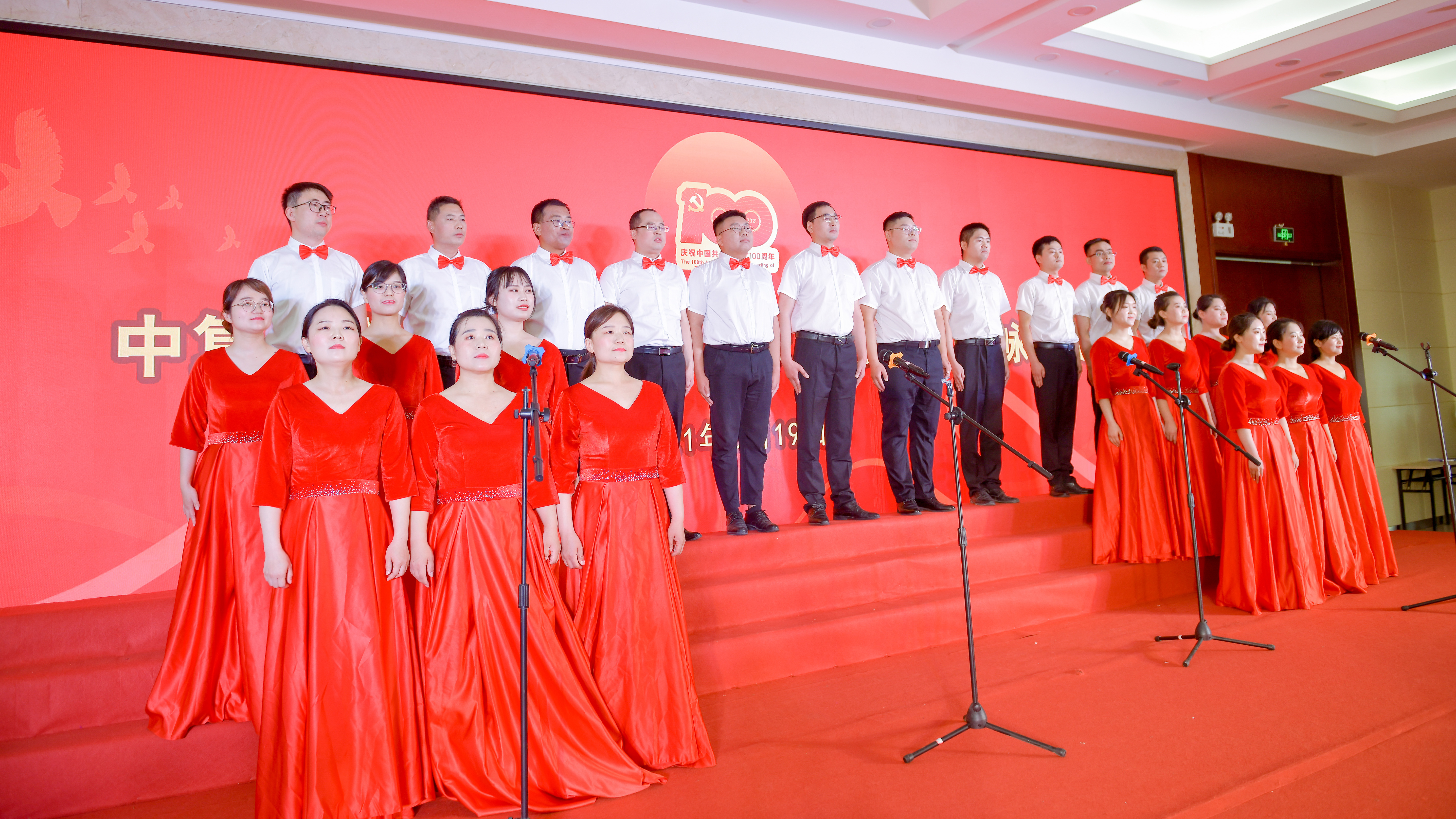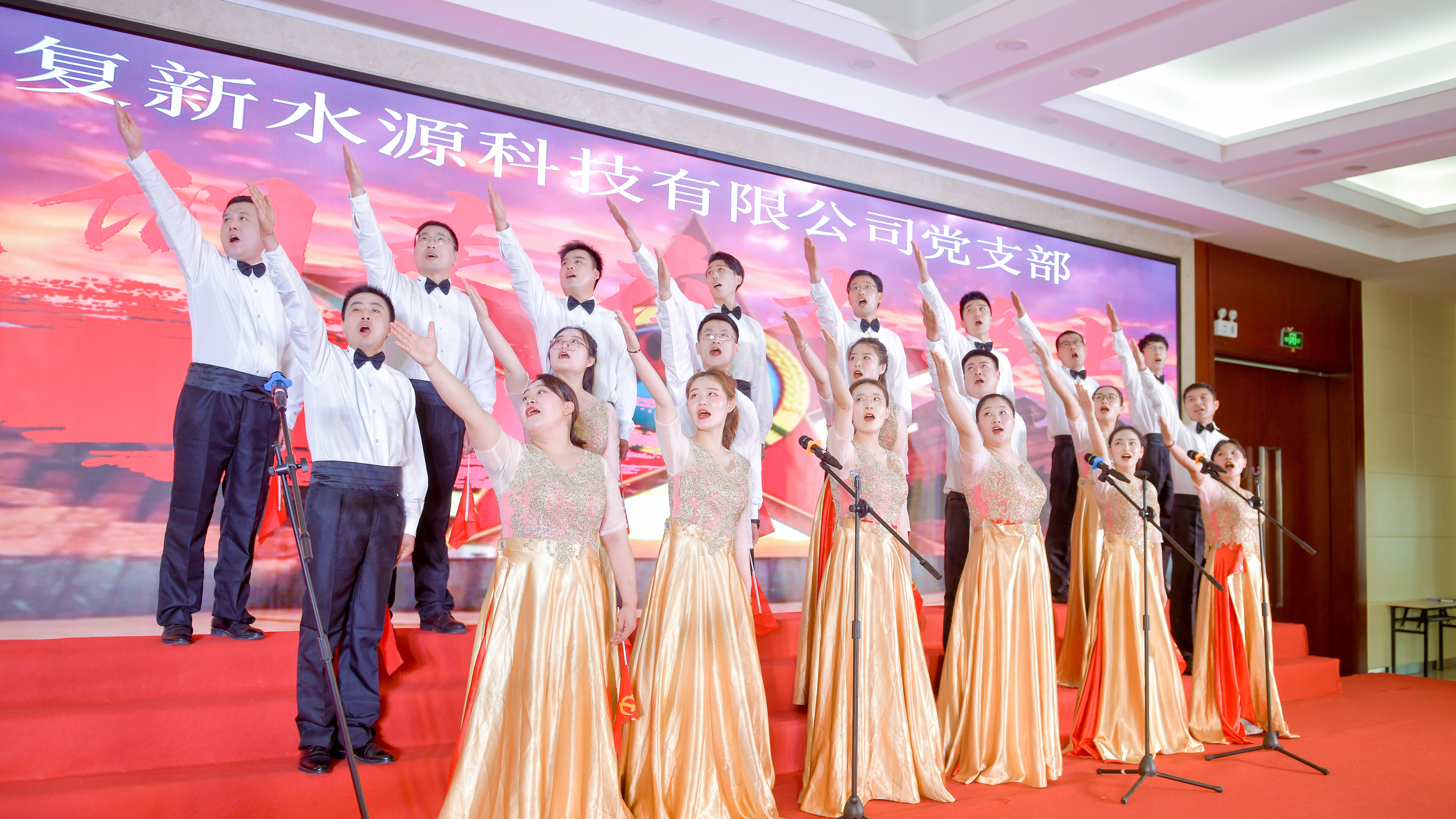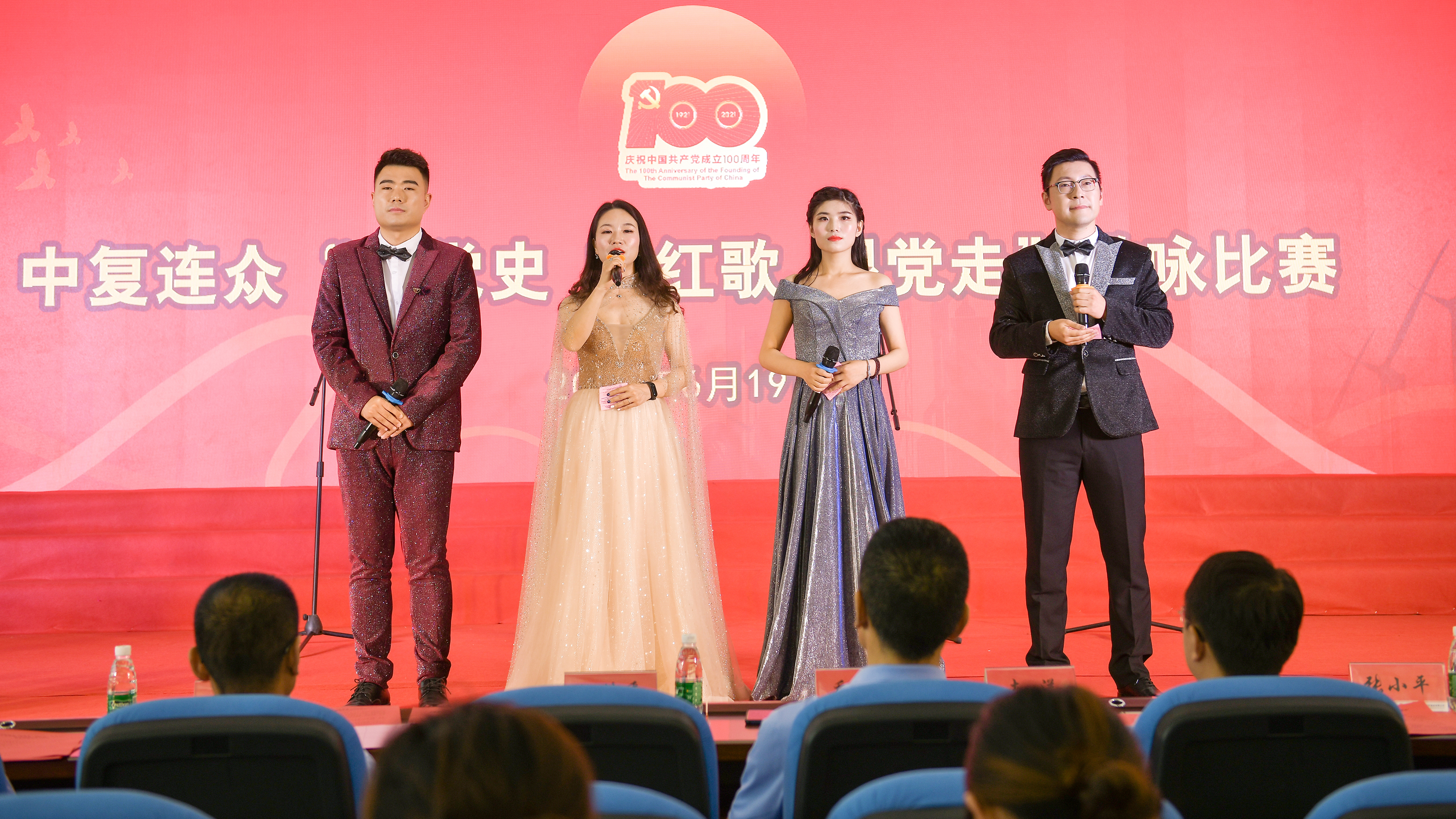 本次歌詠比賽是中復(fù)連眾慶祝中國(guó)共產(chǎn)黨成立100周年系列活動(dòng)之一,分為為三個(gè)篇章,分別是“開天辟地 星火終燎原”“改天換地 萬象俱更新”“翻天覆地 民族必復(fù)興”。每個(gè)篇章由5個(gè)黨支部演繹。