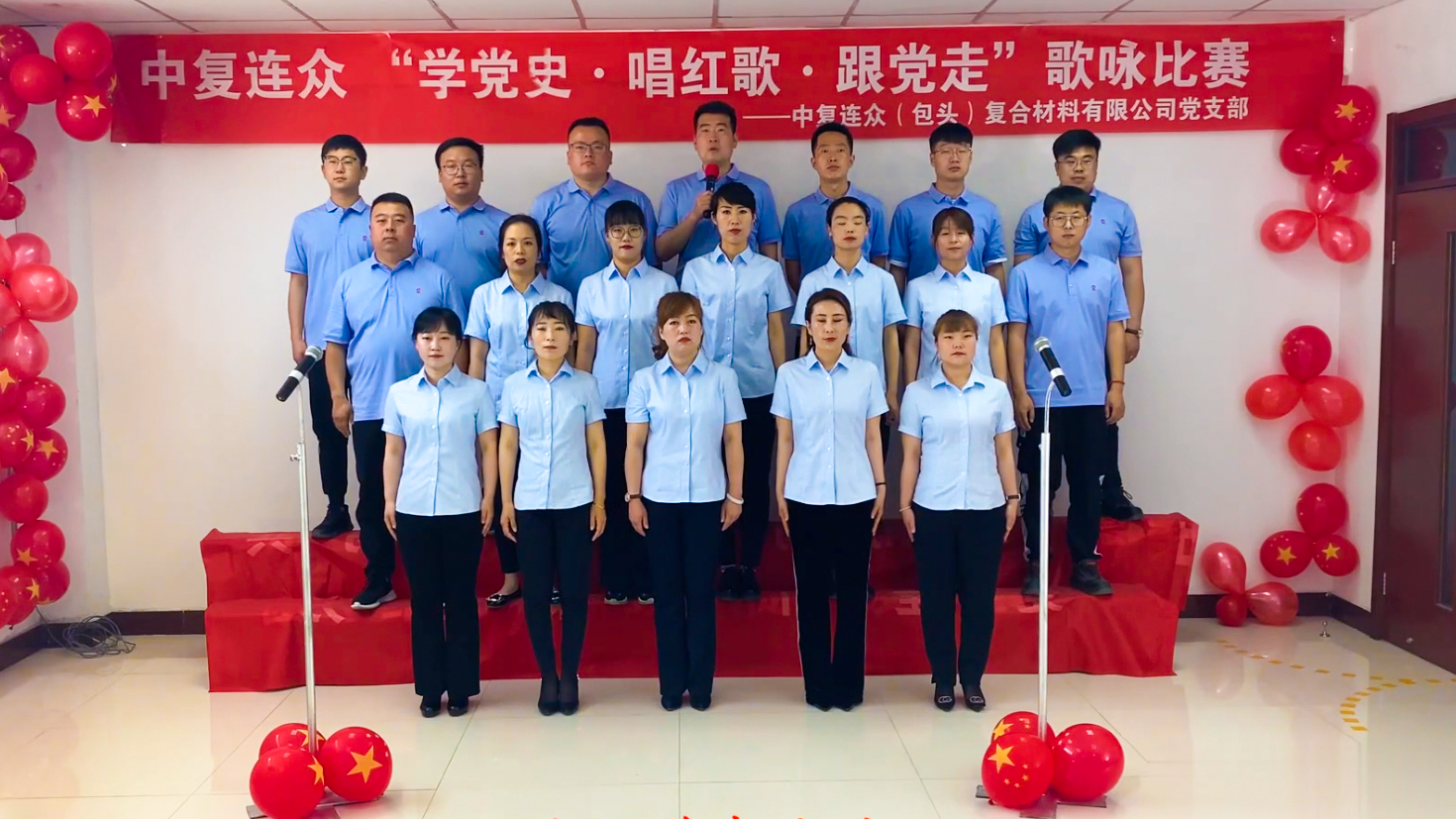 為慶祝中國(guó)共產(chǎn)黨成立100周年,推進(jìn)黨史學(xué)習(xí)教育深入人心,進(jìn)一步激發(fā)公司黨員干部職工愛黨愛國(guó)熱情,6月19日,中復(fù)連眾舉辦“學(xué)黨史 唱紅歌 跟黨走”歌詠比賽。中國(guó)復(fù)材副總經(jīng)理、中復(fù)連眾黨委書記、董事長(zhǎng)喬光輝,中國(guó)復(fù)材黨委副書記、紀(jì)委書記何繼秀,中復(fù)連眾總經(jīng)理南洋等領(lǐng)導(dǎo)班子成員、各支部黨員、積極分子共200多人參加。活動(dòng)全程直播,在連黨支部現(xiàn)場(chǎng)參賽,外地黨支部以視頻形式參賽。